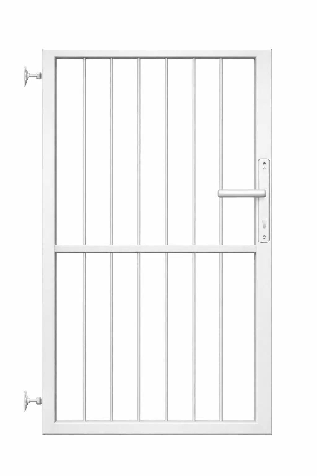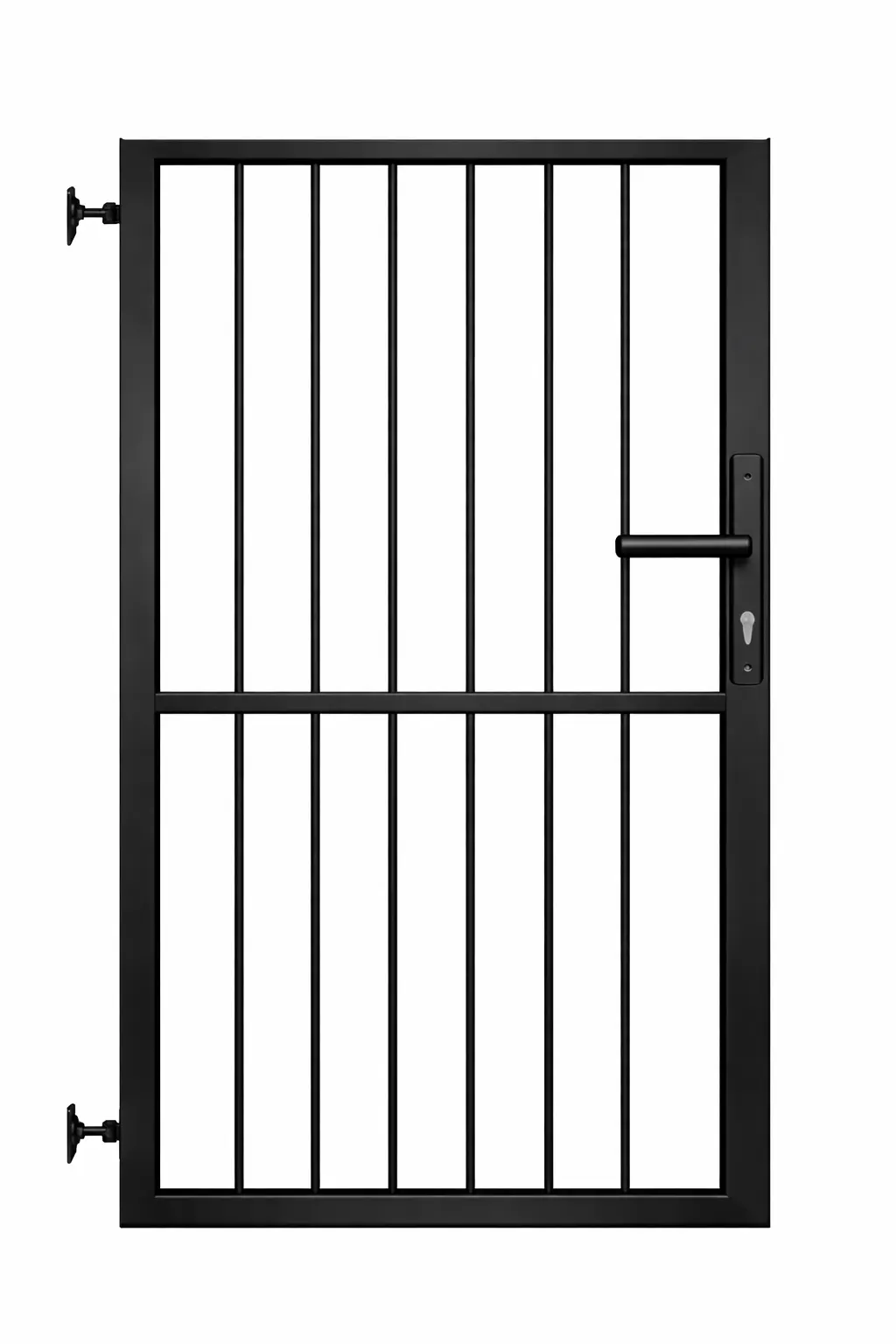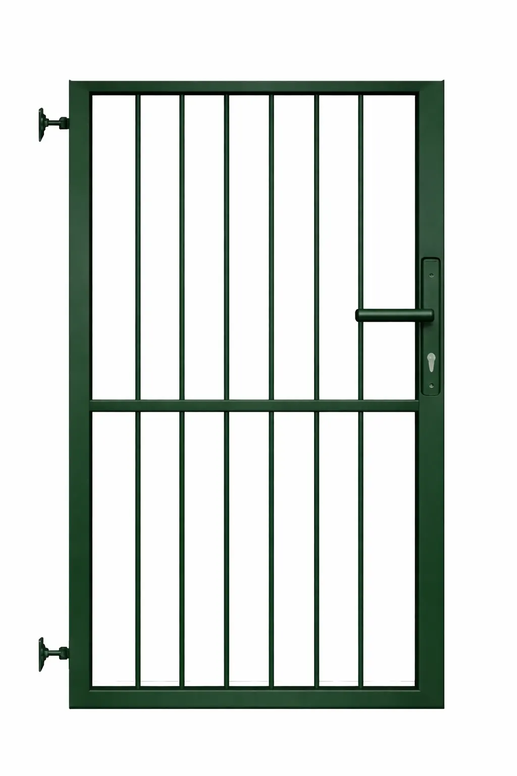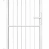 A függőleges pálcás személykapu masszív acél kertkapu gyalogos bejáratokhoz. A stabil kapuváz és a függőleges pálcás kialakítás biztonságos és időtálló megoldást biztosít családi házak, udvarok és ipari területek kerítéseihez.